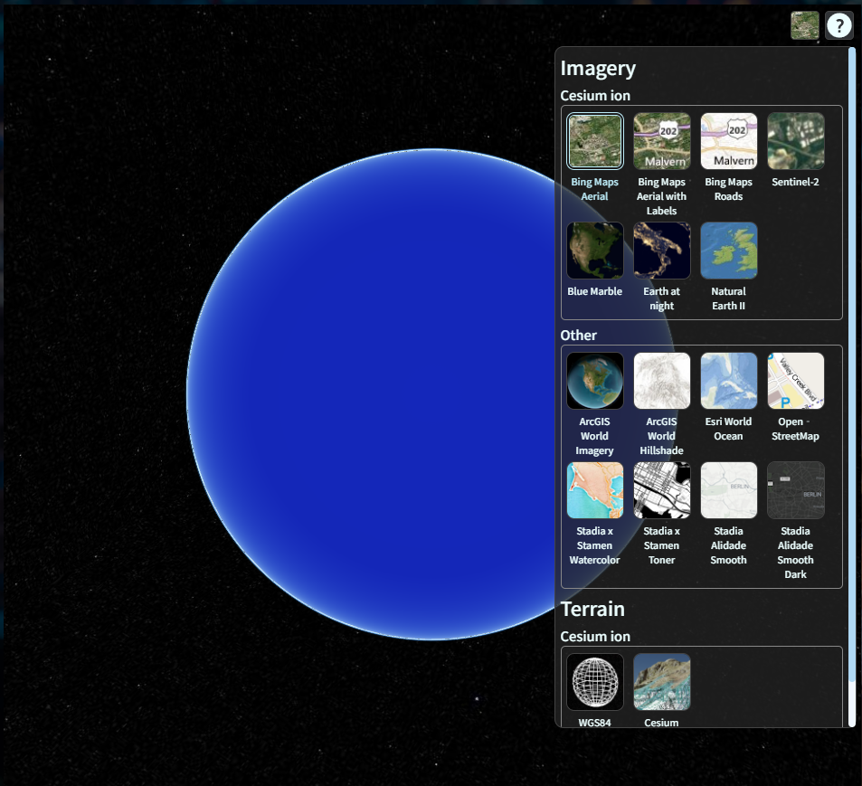 terrainProvider: new Cesium.EllipsoidTerrainProvider(), // 지형 높낮이 정보 제공자