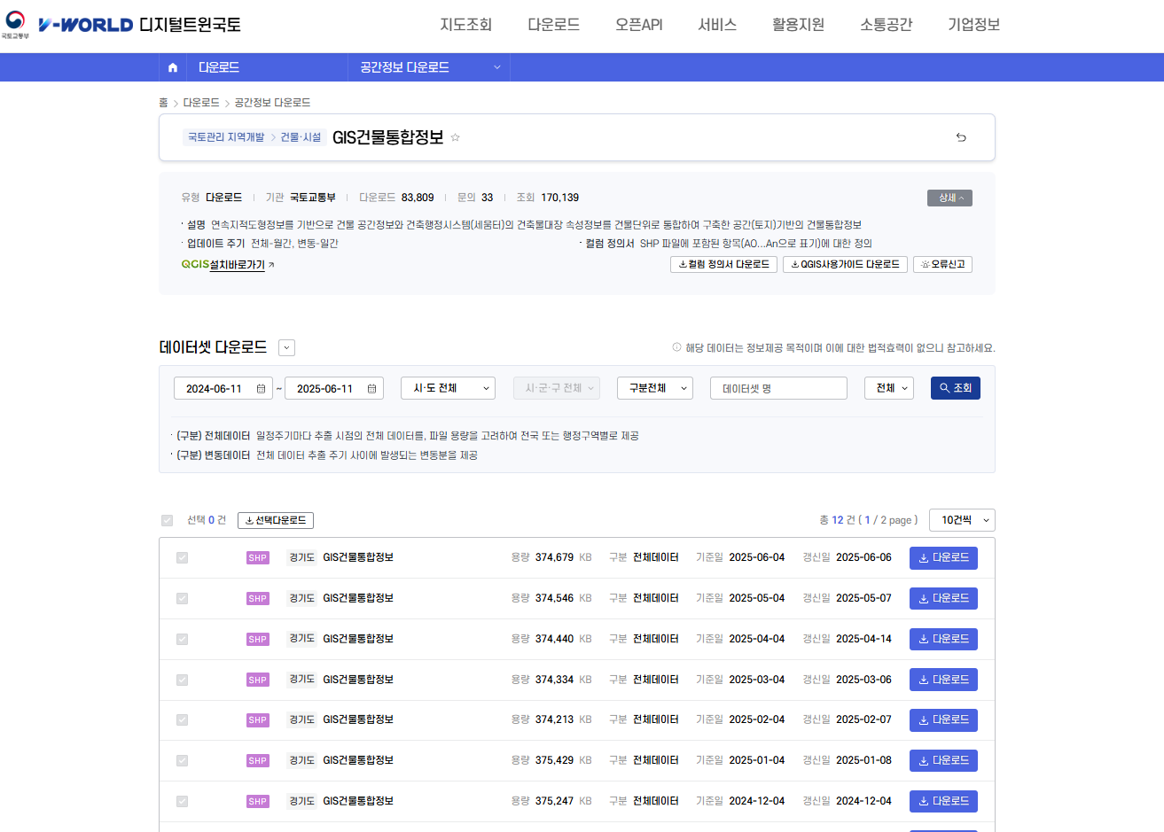 - 건물 정보 SHP 파일 다운받기