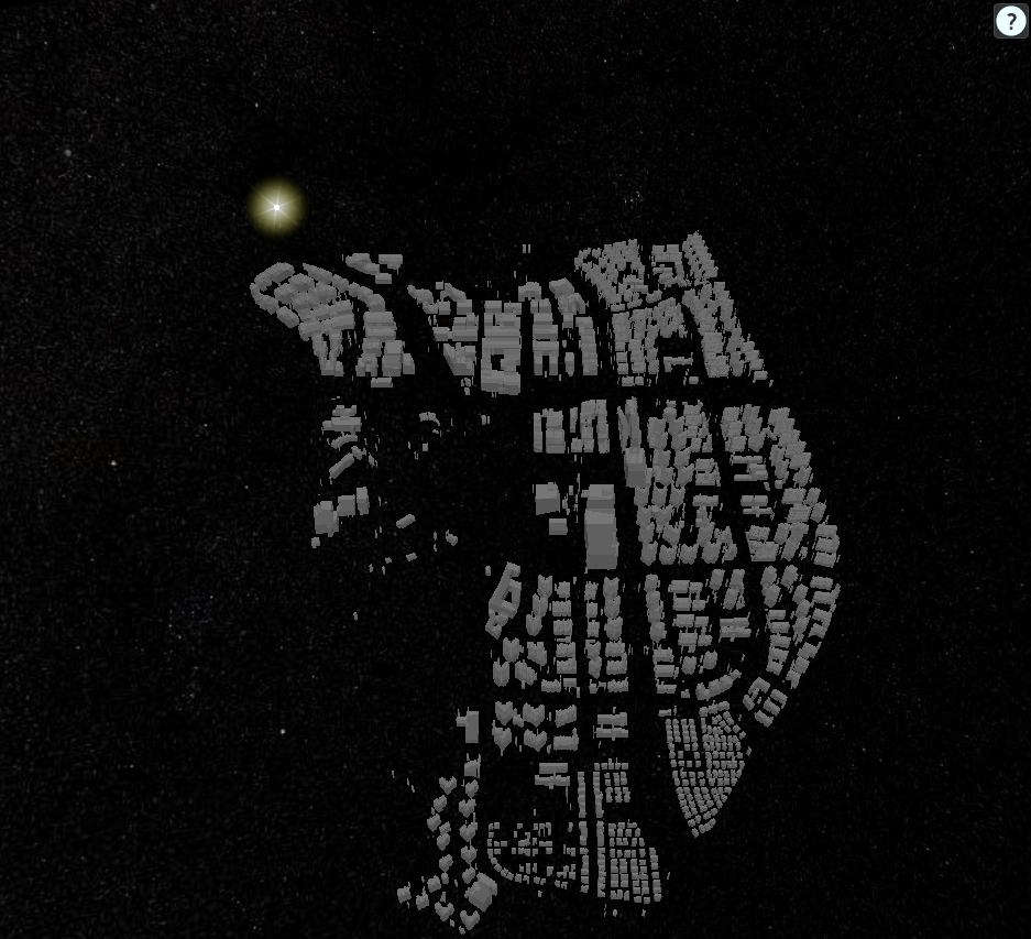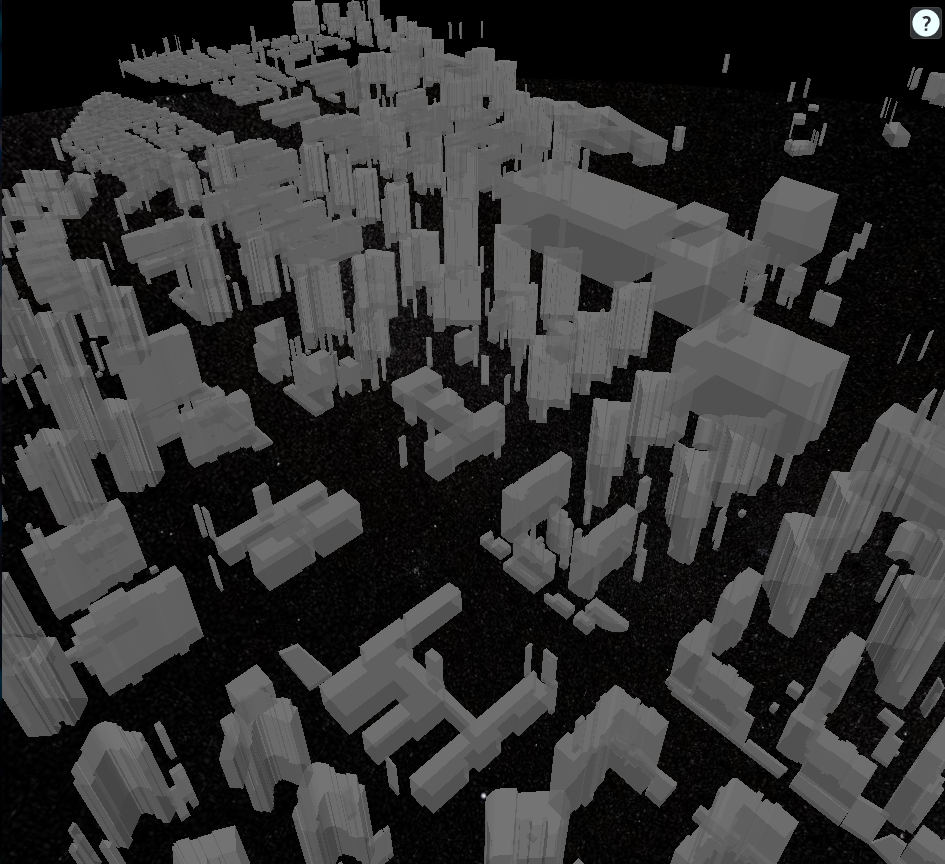geojson 파일을 파싱하여, 건물의 위치와 높이 정보를 추출한 뒤 Cesium 위에 3D 건물로 시각화합니다.
