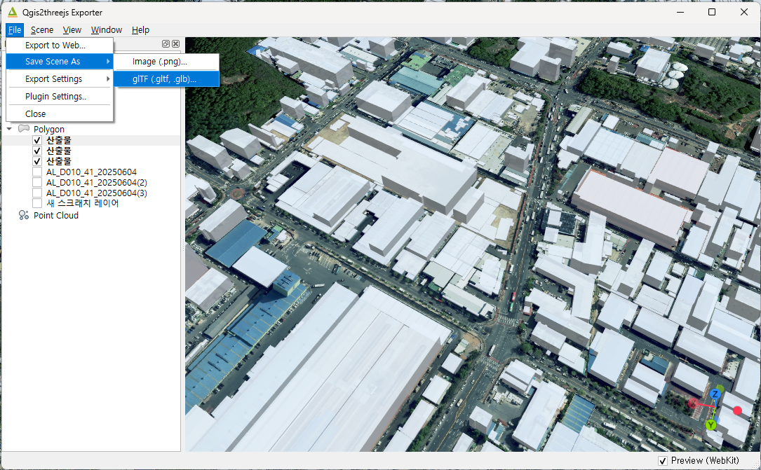 하지만 glTF 파일로 export하기 전에 확인하니, 건물이 높이가 적용이 제대로 되고 있지 않는다는 것을 알았습니다.